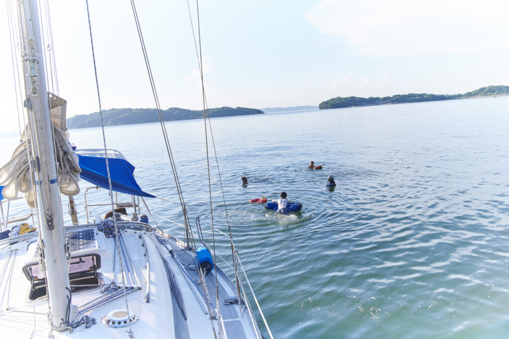 夜はヨットで泊まり、朝は海の上で目を覚ます。